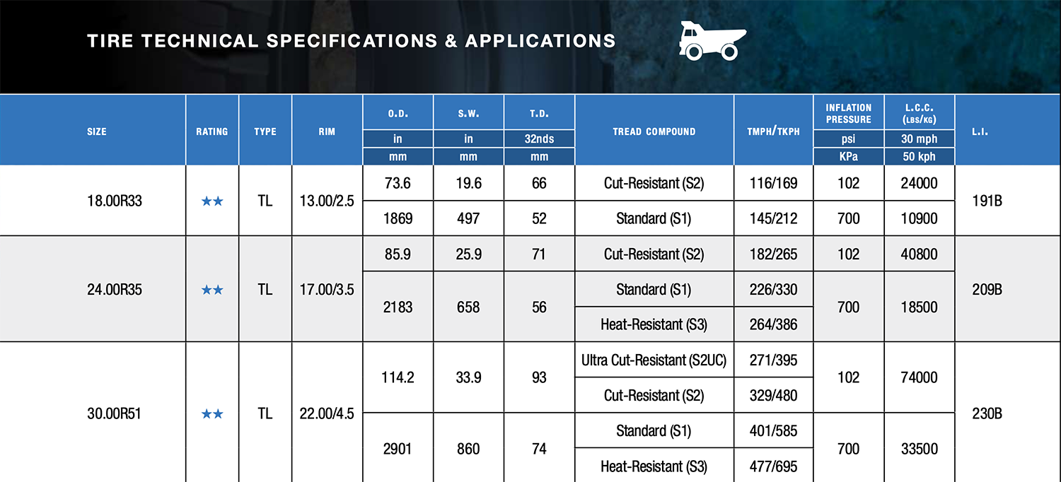 Lưu ý đây là lốp chuyên dụng dành cho xe mỏ, chỉ sử dụng nội bộ, không được lưu thông trên đường.